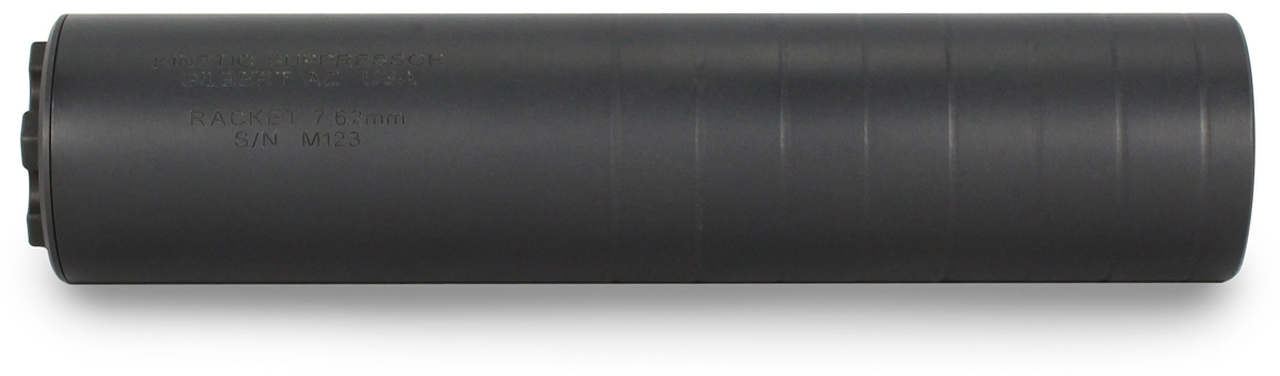 The new and improved Racket 7.62 suppressor is constructed for reliability and durability. Weighing 17.5 oz with a compact 6.6” length. 5/8×24 direct tread. Constructed of heat treated 17-4PH stainless steel this Kinetic suppressor 30 cal can is quiet at 34db reduction and durable. Designed with compatibility in mind, the Racket uses the universal 1.375”x24 threaded rear mount.